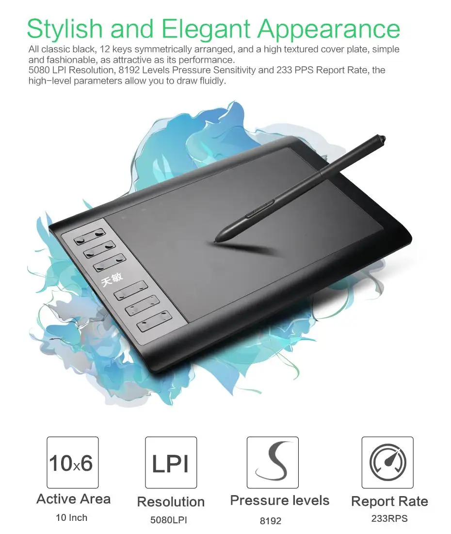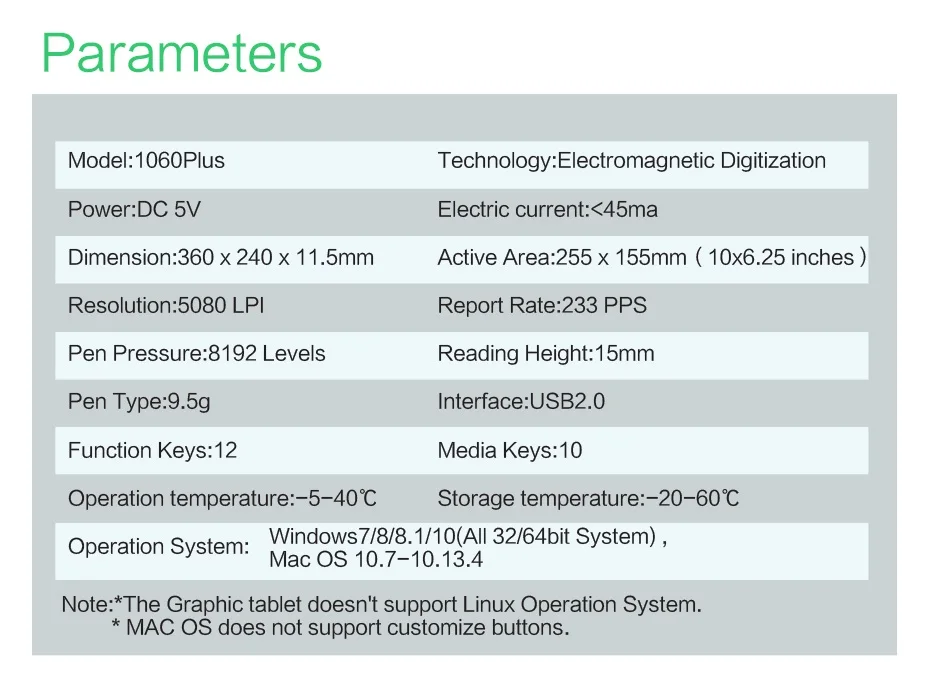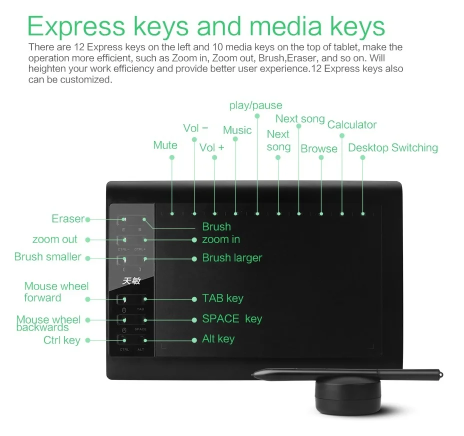 1060Plus has 12 fully default keys on left side and 1 0 media keys on the top, such as zoom in, zoom out, cancel, and so on. Will heighten your work efficiency and provide better user experience .